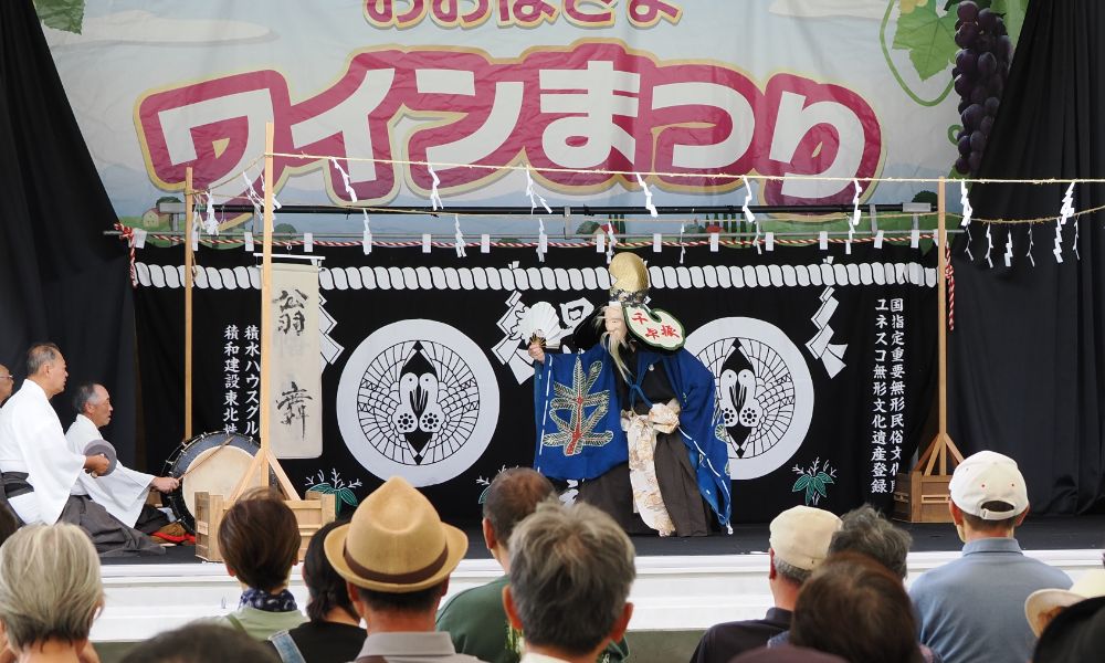「おおはさまワインまつり」は、ワインセット(オリジナルボトルワイン、ワイングラス、ワインゼリー)を限定販売をするほか、ワイン娘によるブドウ踏みや、早池峰神楽の上演をはじめとするステージイベントなど盛りだくさんの内容で開催します。今年はワインの無料試飲も行われます。(数量限定)